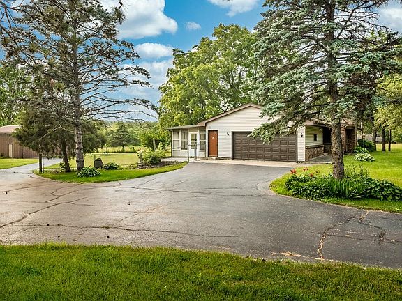 This Roscoe ranch is located on a picturesque country road yet convenient to city amenities, and highway access. Situated on almost 5 acres (Zoned Ag) with mature landscape, you will find a horse barn, pole barn, wood shed, hay pastures, fire pit, fenced yard plus so much more! The ranch style home has hardwood floors, fully finished basement, country style eat-in kitchen, two fireplaces, master bedroom, generator, and first floor laundry. The end loading 2+ car garage includes extra storage space. An oversized screened porch allows for summertime relaxation, and country views. Enjoy a peaceful lifestyle with endless possibilities. House roof is one year old. Property is being sold As-Is to settle an estate.