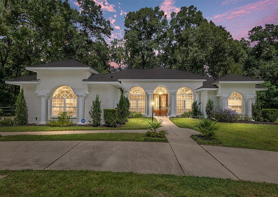 The home is situated in the exclusive neighborhood of Summit Downs, which is surrounded by beautiful horse farms. This location suggests a tranquil and picturesque setting. The house offers over 2400 square feet of living space with a split floor plan, providing privacy for the 3 bedrooms and 2.5 bathrooms. The home has been updated throughout with new floors, updated bathrooms, NEW Roof 2023, and an updated kitchen. This layout is convenient for families and those who may need office space. The property is situated on a spacious lot, spanning over an acre. This large lot not only offers extra privacy but also provides ample space for various outdoor activities. The presence of a fenced-in yard is a valuable feature for those with dogs or pets, ensuring a safe and secure area for them to play. The entryway features an impressive front door and an open foyer, offering a welcoming atmosphere as you step inside the home. The oversized master bedroom includes a sitting area and offers a view of the backyard, creating a serene and comfortable retreat. The master bathroom is equipped with his and hers closets, a large soaking tub, and a walk-in shower, adding luxury and convenience to daily living. The guest bedrooms are located on the opposite side of the house from the master suite, providing separation and privacy. These bedrooms share one bathroom, which can be convenient for guests or family members. The kitchen has been updated and features a layout that overlooks the backyard. An adjoining family room likely makes it a hub of activity and socializing in the home. Summit Downs offers a peaceful and quiet living environment, with lots of walking trails throughout the neighborhood. The mention of adjoining Ocala Downs suggests additional recreational opportunities nearby. The neighborhood has low HOA fees, which can be an attractive feature for homeowners looking for regulation and community maintenance without high costs. This home ready for you to make it your home. Call today for an appointment!