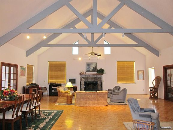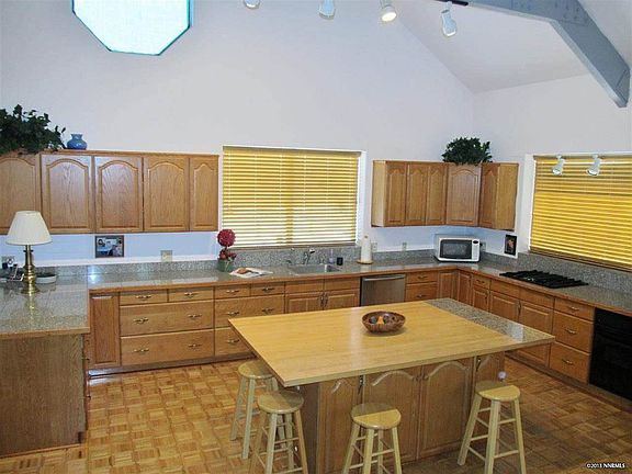 Enjoy unobstructed 360 degree views from this beautiful fully custom home. Enter the private gate past a tree lined driveway to enjoy your new home filled with great features; wide open floorplan, vaulted ceilings, large open kitchen with island and walk-in pantry, parquet wood floors, extra wide hallways, real wood burning fireplace with gas starter, jetted tubs and marble counters in bathrooms, an awesome passive solar sunroom, and hydronic underfloor heating, overlooking Stead Airport. See it today!