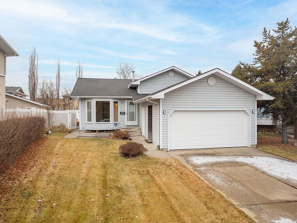 Beautifully updated 4-level split in the sought-after community of Blue Quill! This bright and welcoming home features fresh new paint, new triple-pane windows and new luxury vinyl plank flooring, giving the main living spaces a fresh, modern feel. Enjoy an airy front living room with a large bay window, an open kitchen with great storage, and a stunning sun-filled dining area with patio doors leading to the deck and fully fenced yard. Upstairs offers three spacious bedrooms and a full bath. The lower level includes a huge family/rec room flooded with natural light—perfect for movie nights, a play zone, or a home office. Additional updates include a newer hot water tank, dishwasher, roof (2009), and a new vinyl fence for added privacy. Set on a quiet street close to schools, parks, transit, and amenities, this is an exceptional opportunity to own a well-maintained home in a prime location.