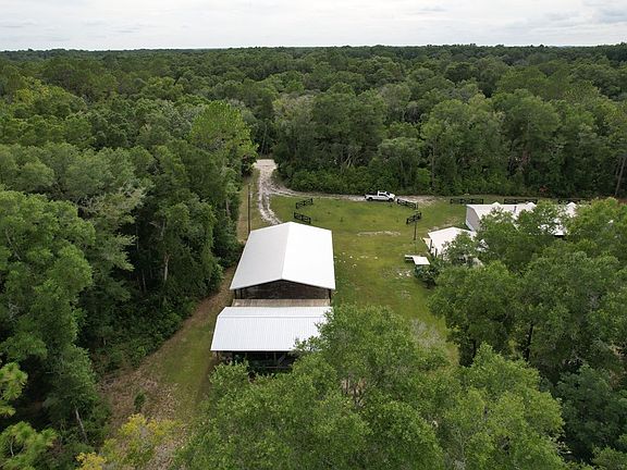 Lovely, private retreat on 3.99 acres, less than 5 minutes from shopping and restaurants. Once you enter through the gate you will feel at home. The property is beautiful with its mixture of clearing and large oaks on all sides, you are in a world of your own. Property boasts of 3 Large pole barns- 60' x 40' and 40' x 24' and a 24' x 24' with concrete floor with an 24' by 18' parking pad. All with electric! Relax on the large screened in back porch or out in the screened in Gazebo on the swing and watch the wildlife. Step through the front door of the home into the large living room and be wowed . This 2280 h/c sq ft Home has 9 foot ceilings throughout and beautiful details everywhere you turn. Dream kitchen with loads of cabinets, upgraded appliances and a large island. Pass-through that goes into Game room area complete with a pool table. Separate Dining room area and extra large laundry room. Lots of natural light with all the windows with transoms above. Split floor plan with the 3 spare bedrooms on one end and a spacious bathroom with double vanities. Beautiful Master retreat with amazing bathroom featuring a garden tub, separate shower and double vanities. Don't forget the spacious walk in closet! This home and property has too much to list, so schedule a time to see it for yourself! Just up the road from the Suwanee River and a short drive to Cedar Key!