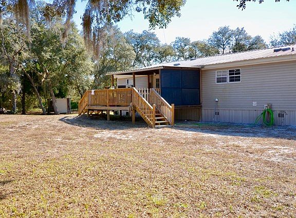 Take me home, country roads! This well-maintained mobile is country living at its best. Easy to get to with county maintained roads all the way in, but in a very private location. Wild life is abundant for hunting. Small pond behind the home where the deer like to come and drink. Imagine yourself on the beautiful back porch overlooking the land, walking the property lines or just hanging out by the fire pit. Super nice pole barn to store all the supplies needed to take care of the land. Sturdy pump house and owned water softener system. Inside features really good sized bedrooms in addition to a 4th bedroom/bonus room perfect for crafting, art, or guests. A little piece of Old Florida paradise is for sale--just down the country road!
