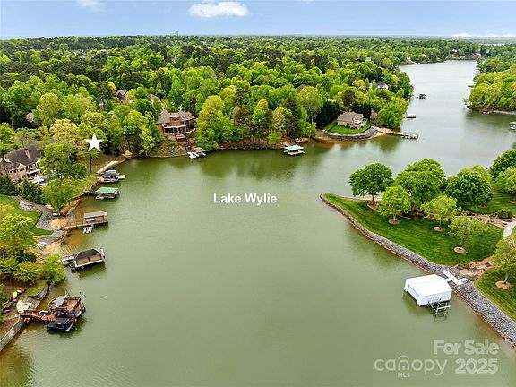 WATERFRONT RANCH with basement in TEGA CAY on LAKE WYLIE in WINDJAMMER COVE! Beach, Covered boat slip with lift, floating pier, on a .49 acre Cul de Sac lot, Gorgeous backyard! In the Watertrace neighborhood on the peninsula. Custom Built Brick 3 Bedroom, Ranch with 3 Garage bays. Walk in the front door to stunning lake views from almost every room in this house! Large Great Room with fireplace, Sunroom, Kitchen with dining area, & Formal Dining room. Primary Bedroom with lake views & deck access, large walk in closet, dual sinks, separate water closet, garden tub & shower. Split floor plan, 2 bedrooms & full bath. Basement: Bonus room with wet bar, Office/Guest room, Full Bath. 2 car Garage on Main, 1 car Garage & Workshop/Gym lower level. NO HOA, Fort Mill Schools. Tega Cay,SC is a recreational city on the shores of Lake Wylie. Beaches, boat ramps, parks, trails, tennis, pickleball, Tega Cay Golf Course, Tega Cay Beach & Swim Club & more.