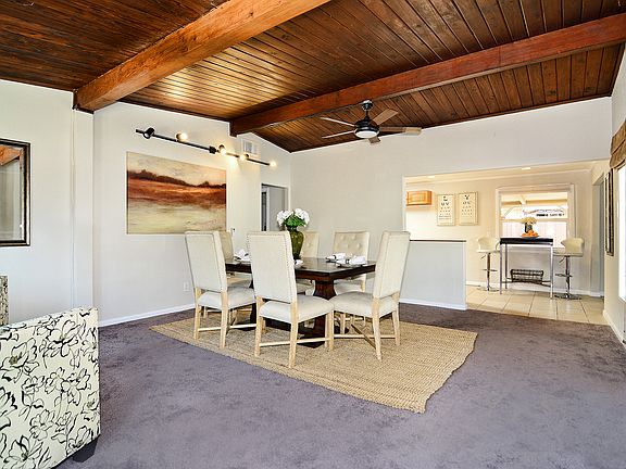 AFFORDABLE & ADORABLE!!! Cutie pie Mid Century Modern with vaulted/wood beamed ceilings and an open concept floor plan. Interior highlights include a formal living room & HUGE family room. Updated kitchen w/maple cabinets OPEN to the family room & the living area. Generous master suite w/ensuite bath & closet PLUS 3 secondary bedrooms featuring vaulted ceilings & tons of light. All bedrooms are one side---great flow for a young family. Outside find a private and tranquil yard with multiple sitting & entertaining areas and plenty of grass for the kids to enjoy. Don't wait on this one....