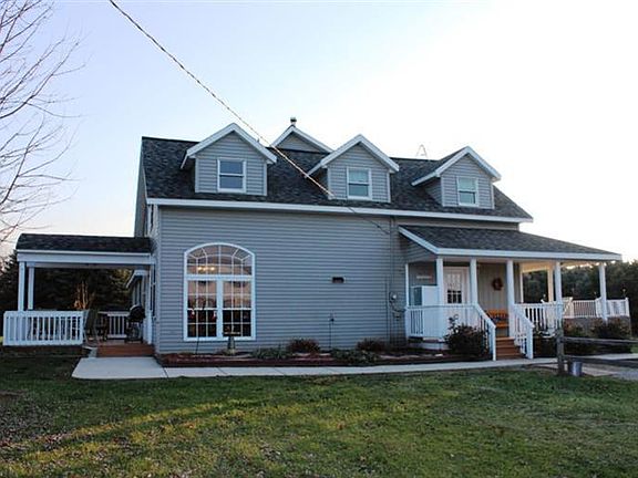 An open floor plan, lg windows, 41acres, & a barn; this home has it all! The lg windows & cathedral ceilings fill the kit, liv rm, & dining area with warm natural light. The open staircase & balcony continue this to the second floor. The spacious master bathroom has both a standup shower & a separate bathtub with jets perfect for relaxing after a long day. There are also H&H closets in the master. There are 2porches on the home; 1 is located on the east side of the home & is perfect for enjoying the sun rise over a warm cup of coffee on a brisk morning. The other wraps around the north and west sides of the home giving you front row seats to beautiful sunsets every evening. There are 41 beautiful acres behind the home. On the land you will find lots of wildlife, trails for riding golf c arts, horses, or walking, a variety of mature trees, 3 paddocks with electric fencing for farm animals, a large pond, as well as a plethora of open space.
