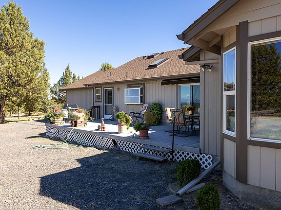 Single-level 3 bed, 2.5 bath home on 5 level acres with great views of Mt. Jefferson and Smith Rock. Designed with comfort and convenience in mind, this home features a half bath located by the garage entry, an office/den with French doors from the primary suite plus a second entrance to the living room—ideal for a home office, nursery, or gym. Additional highlights include a mini split for heating/cooling, cozy pellet stove, central vacuum, 3 skylights and a bay window. Outdoors you'll find 30-amp power, RV/Boat parking, and an impressive 1,280 sq. ft. shop w/ spacious upper storage and a lean-to for extra covered space. The large Trex deck provides the perfect place to relax or entertain while enjoying incredible mountain views. A chip-sealed driveway minimizes dust & mud, while nearby trail systems open endless opportunities for hiking, biking, and horseback riding. Experience the peaceful rural lifestyle of Powell Butte, just 30 minutes to Bend and 20 minutes to Redmond Airport