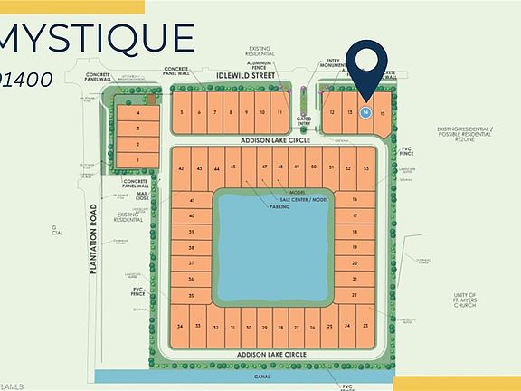 SPECIAL FINANCING AVAILABLE! Last opportunity remaining in Addison Square! Come see this beautiful quick move-in home in Addison Square, a gated community. This single-story features the Mystique floor plan which includes 3 bedrooms, a den, 2 full baths, and 2,056 square feet with all impact windows and doors. Embrace the indoor/outdoor living this home has to offer, with a zero-corner sliding glass door at your gathering room. Guests will be impressed! Low HOA & no CDD in the heart of Fort Myers. Addison Square is east of US 41, west of I-75, and is close to almost everything including beaches, RSW, and schools! Interior photos are of a staged model home. Illustration purposes only. Options may vary. Floorplan, design selections, and site map of the home being built have been uploaded.