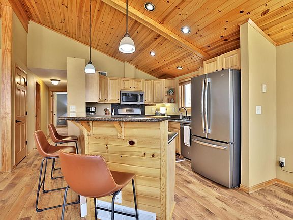 Set on 60 acres in Rush City, this 2-bedroom, 3-bathroom home offers privacy, space, and practical living. The main level features hardwood floors, large windows that bring in natural light, and a gas fireplace in the living room. A wrap-around deck offers a great place to relax and enjoy the surrounding views. Main-floor laundry adds convenience to the layout.