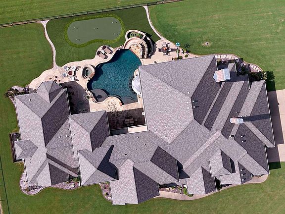 A 605-foot-deep Trinity Aquifer well, housed within a 20'x20' brick well house, supplies 16 gallons per minute, ensuring ample water for the lawn and pool