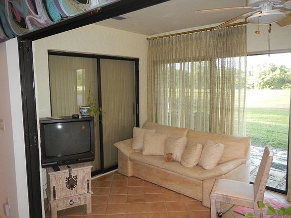 Looking for that open & spacious floor plan with a beautiful view & no neighbors behind you? Are you thinking it makes sense to find a property that you can update the way you want & not pay for someone else's reno? Then you should come see this home. Neutral 10x10 white ceramic tile on the diagonal throughout. Brand new A/C just installed on 7/13/20! The Florida room is air conditioned providing great additional living space for that den/office. The back yard has a golf course view but no golf cart paths close by giving you lots of space & privacy. This home has great bones, just needs your personal touches! Owner's son believes the roof, garage door & water heater all approximately 7-8 years old. There is a beautiful community pool just across the street! Great Buy!