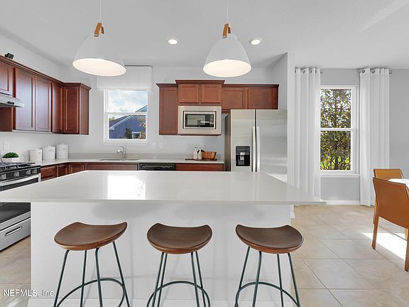 For the home buyer that craves a thriving active-adult community in the heart of Jacksonville. Del Webb e-Town is the place for you! Enjoy a workout or exercise class in the private gym, pickleball or tennis with friends, swim laps or just relax in the resort style pool. Fantastic location with easy access to upscale shopping, fine dining, and premium health care, all within minutes of our beautiful Florida beaches! This charming single-story Contour home (ready SPRING 2023) offers a spacious gourmet kitchen, open gathering room that leads to a covered lanai and an open flex room, perfect for a study or computer room. 2 bed/2 bath home will feature 9 ft ceilings, beautiful 42'' cabinets, and luxury vinyl plank flooring. Call us today to set up and appointment to see this beautiful home.