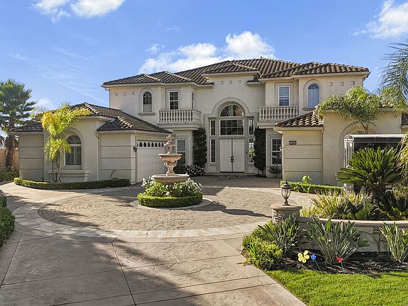 Step inside this beautifully remodeled Santa Barbara model, where timeless elegance meets modern luxury. A circular driveway and fountain create a grand first impression, leading to an elegant two-story foyer featuring a dual staircase and decorative medallion the perfect introduction to this exceptional residence.The main level showcases upgraded tile flooring throughout, a stylish powder bathroom, and a chef's kitchen designed to impress complete with a striking waterfall island, newer designer appliances, and a built-in beverage refrigerator. Upstairs, the upgrades continue with sleek new flooring that enhances the home's open and airy design.Beyond the interiors, this residence sits on an expansive 25,000+ sq. ft. cul-de-sac lot within the prestigious guard-gated Country Club Estates by Toll Brothers, a premier luxury homebuilder. Enjoy breathtaking panoramic views of the surrounding mountains, city lights, and picturesque scenery.The entertainer's dream backyard is a true showpiece, featuring a dramatic rock waterfall, a sparkling pool with party-sized jetted waterfall spa (both finished in Pebble Tec), and an impressive outdoor kitchen with granite counters, large BBQ with searing station, heavy-duty side burner, beverage refrigerator, stainless steel sink with pull-out faucet, and ample storage drawers. Multiple patio areas include bar seating, capped pony walls for additional seating, a cozy outdoor fireplace, and both solid and partially shaded patio covers for all-day enjoyment.Additional highlights include solar panels, outdoor speakers, an intercom system, outlets for gas heaters, and large grassy areas with room for a future guest house or pool house.Residents of Country Club Estates enjoy access to world-class community amenities, including a private country club and restaurant, a championship golf course, tennis and basketball courts, private parks, and scenic trails perfect for walking, biking, horseback riding, or even cruising in your golf cart. This is resort-style living at its finest offering luxury, leisure, and breathtaking natural beauty all in one.
