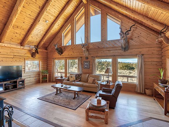 Feel the essence of the West in this classic log home, shining with pride of single ownership. Custom built by Homestead Log Homes with hand hewn D-logs and the utmost attention to detail, offering equal parts efficiency and aesthetics. The vaulted ceilings and great room style living makes this home open and bright, while the natural wood provides warmth and charm. The Cascade Mountains and Smith Rock are perfectly framed through the wall of windows. The 2,349 sq/ft interior features 3 bedrooms, 2 bathrooms, large loft, wood stove, and built-ins galore. Enjoy the surroundings from 2 partially decks or around the fire pit on the paver patio. A 1,600 sq/ft finished shop boasts a full bathroom, w/d hookup, and ductless heating and cooling, The exterior has 2 attached lean-tos for RV parking and 2 full hookups! The peaceful and private 4.85 acres feels far away, yet is merely 20 minutes from Redmond and the airport, and you will enjoy pavement all the way to the driveway. A must see!