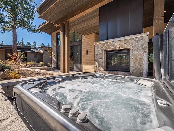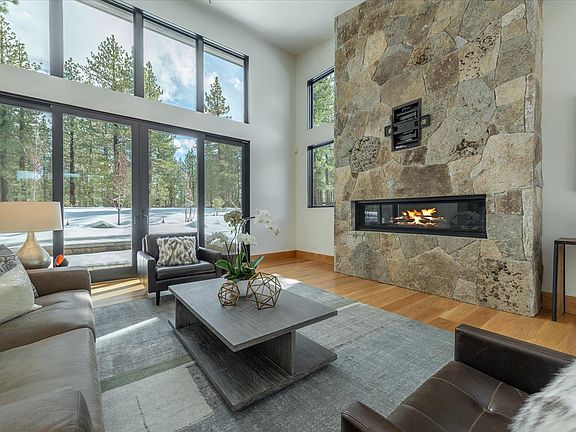 Stunningly beautiful and NEW, Steele Construction has created this masterpiece with a unique and custom design, quality materials and true craftsmanship in the coveted neighborhood of The Ridge in Gray’s Crossing. Custom designed by Lot C Architecture and masterfully built, this spacious 4,015 s.f. retreat is nestled on a .33 acre home site and offers the highest standards of architectural design and luxurious comfort. This beautiful property brings extensive upgrades including zoned hydronic heating with a chilling system for warm summer days, wide plank white oak flooring throughout the living areas, beautifully designed tile work, smart home technology, electric window covering installation option, custom lighting, extensive use of exterior Sierra granite, front and rear patios with covered living areas, large spa, outdoor fireplace, high-capacity BTU exterior heaters, perennial landscaping and so much more! The stunning entry and integrated living areas highlight soaring ceilings, beautiful windows showcasing the mountain setting, folding glass doors to the rear patio and a modern gas fireplace with custom floor to ceiling granite surround. Filled with light and views, the situs of this property brings privacy and a gorgeous mountain ambiance. Entertaining will be a breeze and so much fun in the expansive chef’s kitchen! Whether prepping wonderful meals with friends or creating a cozy dinner, enjoy premium Monogram kitchen appliances, a large walk-in pantry, bar with beverage fridge, custom lighting and beautifully finished alder cabinetry. Extensive use of natural stone quartzite and luxurious quartz countertops throughout compliment the tile and custom lighting that, creating a contemporary and warm visual appeal. Follow the sun with the front, covered patio overlooking the forest or relax in the spacious dining area – open the large sliders that lead to the covered patio, outdoor fireplace and beautifully lit spa for evening gatherings. Your family and guests will delight with the beautiful flow and ambiance, year ‘round! Conveniently located off the main living area in its own private enclave, the primary suite provides access to the rear patio and spa. Luxury abounds with an inset gas fireplace, large and custom designed walk-in closet, beautiful vanity, large frameless glass enclosed master shower highlighting Venato Gold Italian porcelain tiles and a spacious soaking tub; beautifully accented with brushed gold Moen fixtures. Located in its own wing, a lovely guest powder bath, large laundry room with LG appliances, extensive storage and a pretty forest view compliments the open area mudroom. Located here is the mechanical room and access to the upper levels of the property. Kids will LOVE the large bunk room and well-appointed, pretty bathroom; this area is perfect for guest overflow, extended home stays or working remotely – let your imagination and family’s lifestyle create this space! On the upper level, the spacious game/family recreation area brings stunning mountain views and plenty of room to relax. Two additional bedrooms upstairs with adjoining bathrooms (one with a shared bath entrance) completes the thoughtful design. Year ‘round mountain living will be very comfortable and effortless with the heated, three car garage, sunny driveway and ample parking. Whether this property becomes your future full-time residence or a mountain vacation retreat, the design, finishes and accoutrements bring a warm ambiance and an exceptional living environment. Enjoy all Gray’s Crossing has to offer – an award winning, Peter Jacobsen designed golf course, optional Tahoe Mountain Club membership, nearby bike baths, easy access to resort activities and Truckee’s wonderful amenities. Welcome home to Truckee!