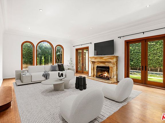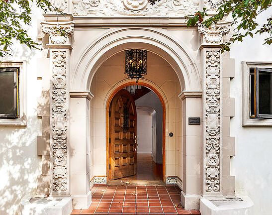 Tucked behind soaring 18-foot hedges, this private Spanish estate seamlessly blends classic 1920s architecture with sophisticated modern updates. Originally built in 1927 by Tony La Maida, the home has been meticulously restored and expanded into a serene compound featuring a 25-meter lap pool and spa, outdoor kitchen, fireplace, shower, koi pond, and multiple patios designed for true indoor-outdoor living. Inside, a dramatic foyer with a sweeping spiral staircase sets the tone for elegant entertaining. The main level includes a grand formal dining room, sun-filled living room with marble fireplace, family room, office, and chef's kitchen with Wolf and Sub-Zero appliances. A guest suite and dual powder rooms complete the first floor. Upstairs, the primary suite offers a marble-clad bath with soaking tub, plus three additional en-suite bedrooms and two balconies overlooking the lush grounds. Additional features include a 520-bottle wine cellar, detached one-bedroom guest house with full bath, and gated parking for six or more cars. Updated systems include 60 solar panels, new Pella windows and doors, copper plumbing, five HVAC zones, Tesla charger, and whole-house water filtration. Moments from the NoHo Arts District, Toluca Lake, and Studio City's best dining and shopping, this historic compound offers rare privacy, character, and craftsmanship in a premier location.