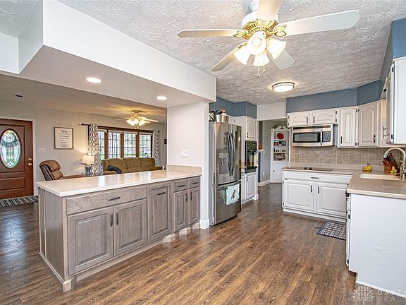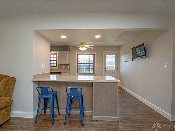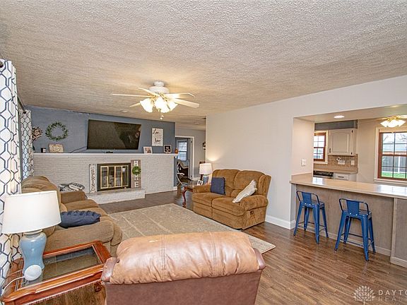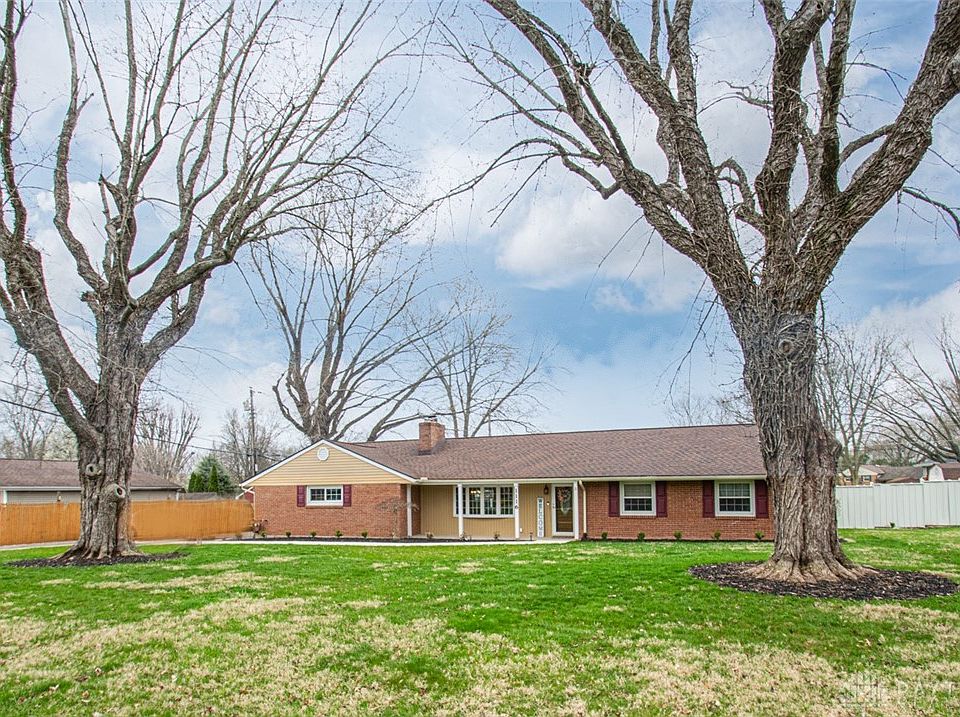 3 bedroom 2 bath brick ranch on nearly 1/2 acre in a prime location within the Beavercreek School District! Great curb appeal with mature trees and privacy. The welcoming front porch leads to the spacious living room with a fireplace and large bay window. New flooring has been installed throughout the home. The kitchen was recently updated and wall removed to open the floor plan. The kitchen features Corian counters, a counter bar area & convenient access to the backyard. Both baths are remodeled and have attractive custom tile. Recent updates include HVAC '19, Roof '17, Siding '20, Water Heater '20, water softener '21. Large mud room/flex space off of the garage is great for pets, a home office, or a workout room. The generous backyard has a privacy fence, patio, fire pit, and a shed. Perfect for cookouts, pets, and kids! Great location close to highways, shopping, WPAFB & WSU. Walking distance to Woodhaven Swim Club.