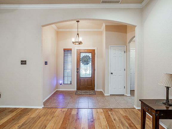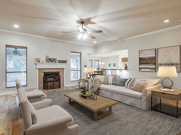 The large laundry room offers ample storage and space for a freezer or second refrigerator. Energy-efficient solar screens keep the home cool in Texas summers while the underground sprinkler system in both the front and back yard helps keep your yard green year-round. Enjoy relaxing or entertaining on the wood deck overlooking the landscaped backyard, perfect for summer barbecues and evenings under the stars.