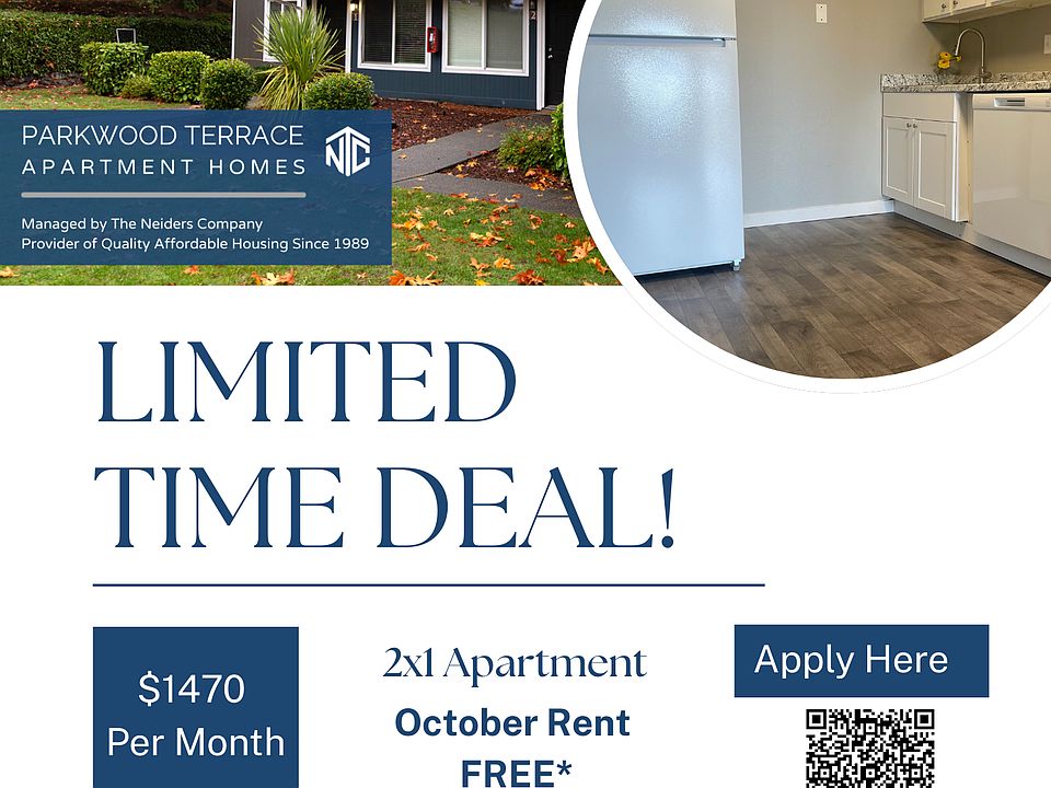 Exciting news! Parkwood Terrace is offering an unbeatable deal on their 2-bedroom, 1-bathroom apartment home. Here's what you need to know: