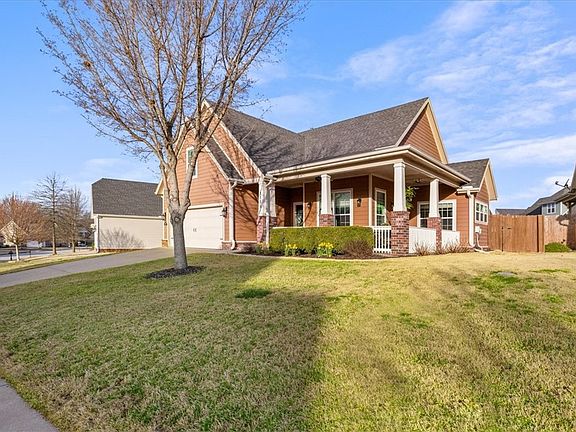 Welcome to this desirable Craftsman-style home nestled in the heart of the coveted Hyde Park subdivision.As you approach, you'll be greeted by a charming wrap-around covered front porch complete with a swing, the ideal spot to relax and enjoy the neighborhood. The large, flat backyard features a spacious covered patio, perfect for outdoor gatherings and entertaining.The main level boast a primary suite characterized by vaulted ceilings and wooden beams. Also on this level are an office or separate dining area, along with bedrooms 2 and 3, and an additional full bath. Upstairs, you'll find a game room and a fourth bedroom with a full bath, providing additional space for family or guests. Residents of this wonderful community can enjoy access to a neighborhood pool, garden, playground, and scenic trails. Located within the highly sought-after Bentonville School District. Don’t miss the chance to call this charming Craftsman your own!