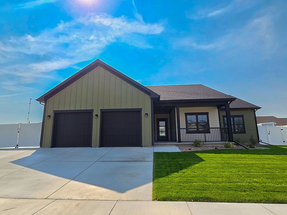 This New Construction home offers a blend of luxury and adaptability, catering to every buyer's needs. Featuring three spacious bedrooms and two bathrooms, the residence boasts soaring vaulted ceilings that enhance its airy ambiance and a touch of modern finishes. The kitchen is a dream with elegant quartz countertops, a Vegas walk in pantry, and high-end gas appliances. Custom roll-out drawers and a hidden garbage compartment add a touch of convenience. Indulge in the warmth of the stylish fireplace, Luxury Pioneer Plus LVP flooring and plush carpets throughout. The primary suite impresses with dual closets and primary bathroom with tiled floors and a tiled shower. The secondary bathroom is also beautifully tiled, adding a layer of sophistication to everyday routines. For those who value organization, the property offers ample storage solutions both upstairs and down. The unfinished basement is a blank canvas, boasting an insulated R 23 ICF foundation, on-demand hot water, and a Reliance Phone Alert System. The home provides a generous heated three-car garage with a tandem section on the left, or the option of using it as a two-car parking space with an attached workshop area to include a hot/cold sillcock with a laundry tub. The outdoor RV concrete parking pad ensures ample space for additional vehicles or recreational needs. Outdoor living is equally impressive with a covered back patio, perfect for entertaining or relaxation. The corner lot will be landscaped and ready to impress, with steel edging, 8 shrubs, 3 trees, 6 perennials, and an underground sprinkler system all included. The fully sod yard is enclosed by a 6-foot white vinyl privacy fence, complete with a 4-foot gate and a 10-foot double gate. Don’t miss the opportunity to make this adaptable and stylish home yours!