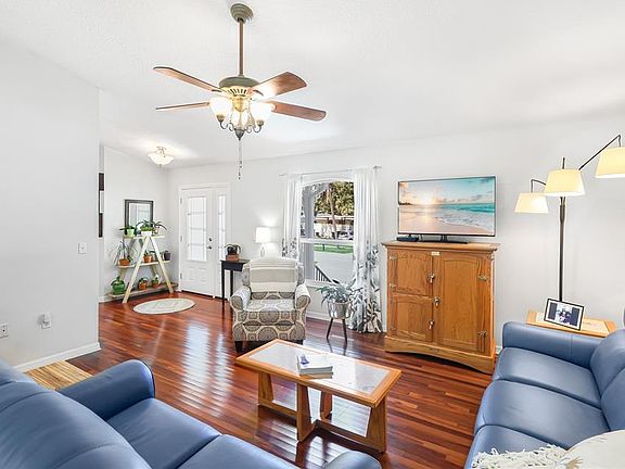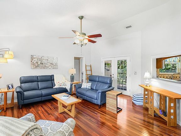 Under contract-accepting backup offers. Welcome home to your private retreat on Bowlees Creek. This immaculate 3-bedroom, 2-bath, 2-car garage residence combines timeless craftsmanship with modern comforts on over 13,000 sq. ft. of land with 125 feet of serene creek frontage. Elevated on a 5-foot raised foundation, the home also offers a lattice-enclosed, crawl space—perfect for storage, a workshop, or hobbies. Step inside to cathedral ceilings and hardwood floors throughout—no carpet. The expansive kitchen features stainless steel appliances, granite countertops, gas cooktop with convection oven, eat-in dining, and rich cabinetry. Thoughtful upgrades include a central vacuum system, PGT impact-rated windows and door, motion-sensor exterior lighting, security cameras, additional hose bibs, outlets, and gutters with French drains, new roof (2022), and A/C system (2020). Enjoy lush garden views from the screened-in covered porch, flowing onto a Trex deck and into the fully fenced backyard. Canopied by oak and palm trees, this shaded oasis is alive with birdsong and butterflies, featuring an outdoor shower, koi pond, and the tranquil flow of the creek. Truly one of a kind, 1116 Danny Drive offers natural beauty, privacy, and unmatched convenience. Nestled in a quiet neighborhood yet minutes from golf, dining, shopping, Sarasota’s rich cultural attractions and our world famous beaches. This home is a rare Sarasota gem. Schedule your showing today!