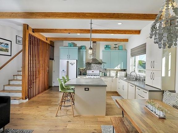 Cardiff beach living at its best! Beautifully redone home with bonus separate office/yoga studio/playroom space in back. Ocean views from Master and amazing sunsets from outdoor living area. Minutes from the beach and best Cardiff schools. Designer touches throughout - beach glass & concrete island counter top, 10' exposed beam ceilings, Du Chateau oiled hardwood floors and vintage pendant lighting. La Cantina panoramic wood wall doors opening to indoor/outdoor area with wood burning fireplace. Huge multi leveled yard with beach sand. Casita can be used as detached office, game room or gym. Attached garage with washer/dryer, built in microwave and high end appliances. Available for duration shorter than 12 months at $550/night. Small pets considered- rent may adjust. The property is unfurnished. Can be furnished on longer term for a fee spread out over the lease term if needed. **no realtor solicitations please** Owner pays basic landscape maintenance. Tenant pays all utilities/hot tub maintenance.