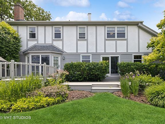 Welcome to this exceptional flagship home tucked away on a peaceful cul-de-sac in the highly desirable Ivy Hill II subdivision of Arlington Heights. Backed by a lush, tree-lined park that will never be developed, this rare gem offers unmatched privacy and scenic beauty year-round. With 4 spacious bedrooms, 2.5 bathrooms, and thoughtfully designed living spaces, this home offers both comfort and elegance in one of the village's most coveted neighborhoods. Step inside to find warm, rich maple flooring flowing through much of the home, enhancing a timeless and inviting atmosphere. The sun-filled formal living room features beautiful built-in shelving flanking a cozy brick fireplace with a custom solid wood mantel, ideal for quiet evenings or entertaining guests. Continue into the expansive family room, where a full wall of built-ins, and a dramatic floor-to-ceiling bay window with deck access create the perfect gathering space, all overlooking the tranquil backyard and protected green space beyond. The kitchen is filled with natural light and equipped with quality wood cabinetry, stainless steel appliances, and ample counter space. An adjoining dining area is perfect for casual meals, with sliding glass doors leading to the multi-level deck. Upstairs, the oversized primary bedroom offers a peaceful retreat with plenty of room for a sitting area, while the ensuite bath includes dual vanities and granite countertops. Additional bedrooms are generously sized with abundant natural light and closet space. Bathrooms throughout the home showcase unique decorative tile flooring and updated finishes. The oversized laundry/mudroom is a dream for organization and everyday functionality, featuring extensive cabinetry, a utility sink, and easy access to the garage. A partially framed basement offers endless potential for future living space, storage, or recreation. Outside, enjoy your morning coffee or host weekend barbecues while overlooking beautifully maintained landscaping and sweeping views of the open park. Mechanically updated with a new Trane HVAC system, newer roof, updated electric, and a whole-house humidifier, this home offers peace of mind and modern efficiency. Located in the award-winning Arlington Heights school district, and just minutes from Lake Arlington, Camelot Park, shopping, dining, and vibrant downtown Arlington Heights, this is a rare opportunity to own a one-of-a-kind home in a premier location.