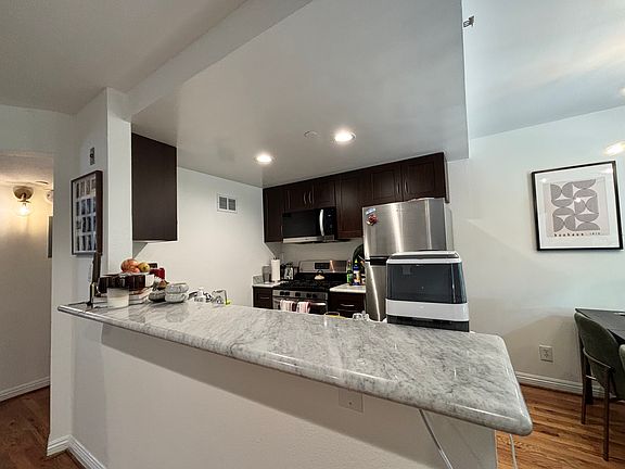 Welcome to Adams Hill! Well maintained gated complex in one of the most desirable areas in Glendale! This immaculate one bedroom unit offers modern open floor plan, kitchen with marble counter tops, breakfast bar, and plenty of cabinets, fireplace in living room and hardwood flooring. Recently upgraded appliances, a freshly remodeled bathroom, fresh paint and new storage closets. Conveniently located near Glendale Galleria and Americana.