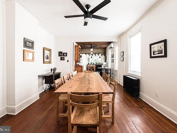 Welcome to the Peg and Awl House, a beautiful three-story Victorian style home located in the heart of Fishtown. On a quiet neighborhood street, the house is conveniently located near dozens of the best restaurants, cafes and bars in the city, great public and private schools, I-95 and a 10-minute walk from the Girard stop on the EL train. The historic home has been meticulously designed, renovated, and transformed into a bright and cozy space with tons of natural light, architectural charm and modern infrastructure. Featured by Remodelista, Design Sponge and used as the setting for several movies, photoshoots and documentaries the house has a rare timeless quality. With winding staircases, beautiful wide-plank old-growth pine flooring, built in bookshelves, extra tall ceilings with plaster crown molding, large open rooms with exposed beams and a 100ft long back yard shaded by a horse chestnut tree, it will feel like you have been transported to into an exciting world full of wonder as soon as you enter the front door. Once inside there is a library/study with two large windows, built-in floor to ceiling bookshelves and a daybed to curl up with a book. The dining room and kitchen are combined to create a large open space perfect for family gatherings. The kitchen, newly renovated has an Ilve natural gas range with overhead exhaust, a double door GE refrigerator with chest freezer, and custom-built cabinets made from reclaimed chestnut. The floor is heated with a hydronic radiant system and is covered with large chalkboard slate reclaimed from a nearby school. The cast iron double basin sink faces out to the huge private backyard perfect for curious children and pets. There is also a raised bed garden and a brick patio great for summer barbeques. Off the back of the kitchen is a bath and laundry room. After walking up the winding stairs with original railings to the second floor, there are two generously sized bedrooms with ample closet space and a large family room with vaulted ceilings and a wood burning stove. There is also a newly renovated full bath with tile floors and walls, cast iron clawfoot tub/shower and a reclaimed wood panel wall extracted from the library at the University of Pennsylvania. Continue up the winding stairs to the third floor where there are two more large bedrooms each with closets, and plenty of space to add an additional bath if needed. Throughout the house there are details that give it is timeless charm; Schoolhouse Electric light fixtures, custom painted accent walls, secret storage under the kitchen stair treads, a hidden barrel from the prohibition days, custom built in cabinets, custom trim and baseboards, Hardiplank siding, and a standing seam metal roof on the back section of the house. Natural light pours into every room through large newly installed windows. On cool days open the windows and the fresh air quickly circulates throughout the entire house. For cold or hot days, the house is temperature controlled with newly installed air-conditioning and original cast iron hot water radiators. The roof was replaced in 2019 with a transferable 10 year warranty. Outside in the back yard stands a separate 200 sqft office/studio. Built with reclaimed wood, a double french patio door, a huge bay window, custom Anderson windows and sky lights, the building has incredible natural light. Completely insulated, it has electricity, heat, internet and has served as a woodshop, art studio, photography studio, office, and a home schoolhouse. Every detail of the Peg and Awl house has been skillfully crafted. From the original workmanship to the new renovations the best materials have been used to create a truly one-of-a-kind home that will last forever. We invite you to become a part of this house and its legacy as you add new layers of memories and stories to its rich history.