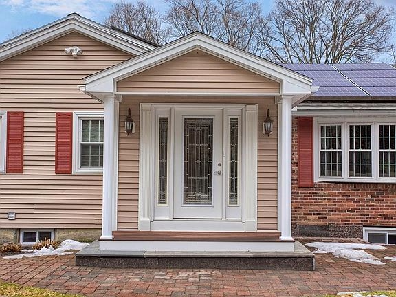 PRISTINE, NOTHING TO DO BUT TO MOVE IN & ENJOY! Totally renovated Contemporary Ranch situated on 1.39 acres abutting conservation land on prestigious George Hill Rd. Stunning Chefs kitchen with granite counters, Stainless steel appliances, Island, breakfast bar & ample custom cabinetry. Open concept living area with vaulted ceilings, sky lights & French doors that open to the rear deck overlooking the level yard & organic garden area. Beautiful Master Suite with modern master bath offering marble flooring, bidet, double sinks & walk in closet .Additional 1,200 sq.ft. in the finished lower level that has perfect in-law potential with a kitchenette, 3/4 bath & large living area. Gleaming Hardwood flooring, marble & travertine tile, central air, attached 2 car, heated garage and more. Seller has connected to town sewer & the betterment has been paid. Landscaped grounds with flowering trees, roses, fruit trees, berries & handy garden shed. Don't miss out on this impeccably maintained home!