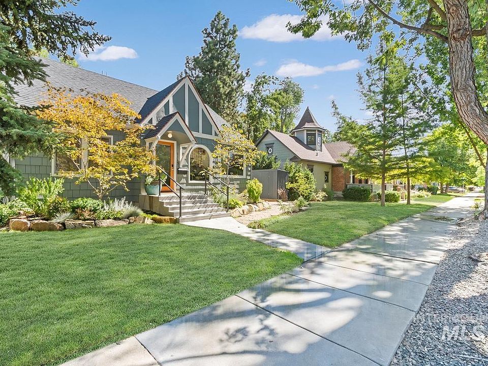 Classic period character meets striking modern updates in this charming cottage tucked on a tree-lined street in the heart of Boise's North End with amazing proximity to Hyde Park, Downtown Boise, local shopping, dining and top-rated schools. Arched doorways, hardwood floors and built-ins set a timeless tone, perfectly balanced by thoughtfully updated bathrooms, fixtures and a light-filled kitchen showcasing custom cabinetry, granite countertops, 6 burner gas range and wet bar. Versatile layout offers multiple living and dining spaces, including a daylight basement with bonus room, bedroom, and full bath—ideal for guests or multi-generational living. Discover a private backyard oasis where a covered patio, lush landscaping with low-maintenance turf, and a tranquil water feature create the perfect backdrop for entertaining, while a sauna, hot tub, and cold plunge provide a luxurious spa-like experience. Solar panels and garage parking offer added efficiency and convenience.