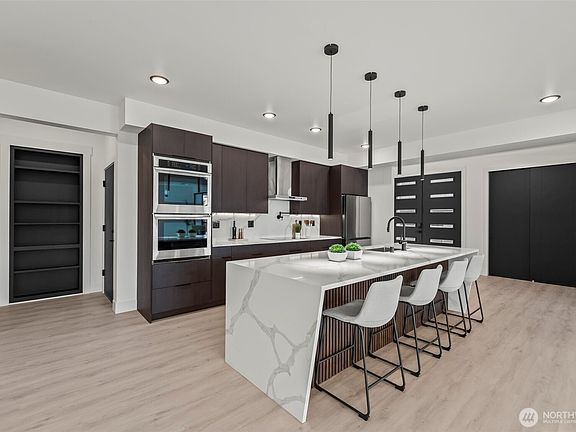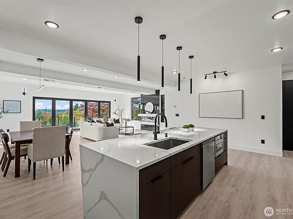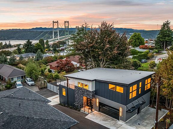 Modern new construction in North Tacoma offering 3898 sq ft of refined living w/ captivating views of the Narrows Bridge and Puget Sound. Open-concept design with a waterfall quartz island, office, expansive custom doors that blend indoor-outdoor living. 3 bedrooms, 2 baths include a primary suite with a rain shower & soaking tub, covered deck off primary offers an outdoor fireplace and is plumbed for a kitchen. The 1,167 sq ft ADU includes 2 bdrm, a flex room, full kitchen, bath, laundry, and separate entry—ideal for multi-gen living or income potential. LVP flooring, pantry w/ custom Murphy door, electric fireplaces w/ambience options. Fully fenced yard w/ turf, 2 EV chargers, 2 car-gar + xtra parking, & much more! 2-10 Warranty.