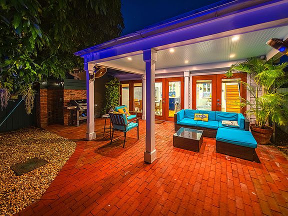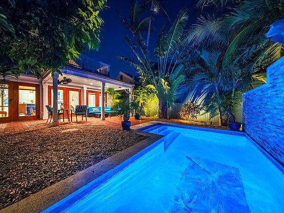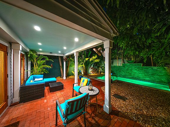 X FLOOD ZONE! Exquisite retreat in the heart of Old Town Key West--an ideal private sanctuary with rental income. This remarkable home offers refined style, privacy, and a proven rental history, appealing to buyers who value luxury and the allure of a tropical lifestyle. Behind an unassuming facade lies a sophisticated residence filled with high-end details. Restored in 2017, this home features three spacious bedroom suites. The open floor plan flows seamlessly from a bright, inviting main living area to a gourmet kitchen equipped with vein-cut onyx and translucent Quartzite countertops that light up, Jenn Air stainless steel appliances, and a dedicated bar with a wine cooler--perfect for both entertaining and everyday indulgence. White oak flooring.The living area extends to a private backyard oasis with a covered outdoor lounge, a heated saltwater pool, outdoor shower surrounded by lush greenery. The second-floor suite boasts a private rooftop deck, an ideal space for sunbathing or stargazing. Set in the preferred X Flood Zone, with impact windows and doors, this home blends modern flair with classic Key West charm, featuring light-filled rooms, 14-foot tongue-and-groove ceilings, and white oak hardwood floors. The classic shotgun-style layout guides visitors from the welcoming hallway through to the tropical backyard, creating a tranquil escape perfect for relaxation or entertaining. In a prime location, the property is within walking or biking distance to Key West's best beaches, restaurants, and shops, allowing you to enjoy all that the area has to offer with no need for a car. Bonus is Off-street parking for a small car, a rare convenience in Old Town. This unique property, features an 8' x 4' Alan Maltz -a local artist- mural in the pool. Enjoy both seclusion and easy access to Key West's most popular spots. Don't miss your chance to own this luxurious home offering style, charm, and great rental income potential! Video https://tinyurl.com/1116Packer