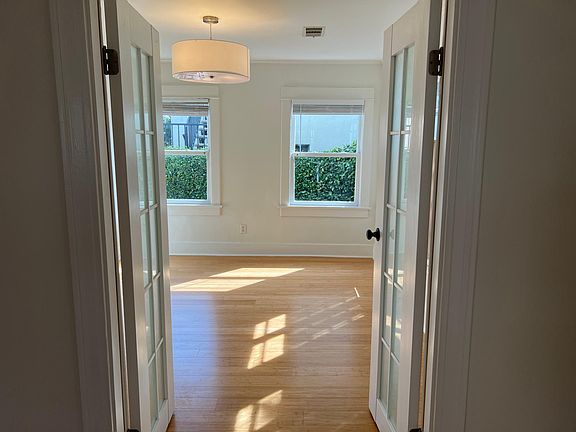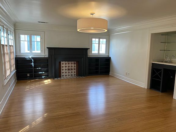 SPANISH CHARMER! Entire house on quiet street. Three bedrooms, two bathrooms, plus an extra room for use as a dining room or home office. Move right into this private, light-filled home with a large yard perfect for entertaining. Bamboo hardwood floors throughout. Large living room has a Spanish tiled mantle and a wet bar. Eat-in kitchen has eco-friendly flooring and white quartz countertops. Washer/dryer plus stainless steel gas stove, microwave, dishwasher and brand new refrigerator. Spacious backyard includes a large brick patio as well as a separate deck with a shaded pergola. Mature plantings including bamboo, birds of paradise and palm trees. The eco-friendly lawn is low-water and drought resistant. Driveway with two tandem off-street parking spots leads to a one-car garage. This is the original 1922 garage, so it is best for small cars or for a workshop or storage. The house balances modern conveniences like central air conditioning/heat and designer kitchen appliances with classic 1920's vintage charm including built-in bookcases, a claw-foot tub and wrought iron curtain rods. Near shopping and restaurants on Larchmont Blvd and the Grove Shopping Center. Three parks nearby - Memorial Park & Public Library, Harold Henry Park, and the tennis courts at Queen Anne Recreation Center. Mid-Wilshire location is between Beverly Hills (west), downtown (east), Hollywood (north), Koreatown (east) and near several major studios. Fenced yard. Cat OK. Small dog OK. One-year lease with annual renewal option. Owner pays for gardener.