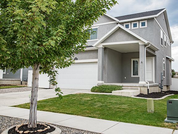 Delightful 3 bed 2.5 bath Heber home with scenic Timpanogos views! Utilities are also fully covered! Full granite kitchen and cozy fireplace in Great Room, gas range, master bedroom with large walk in shower with subway tile, stainless steel appliances, and fridge has French doors. 2 car garage, 2 car driveway and gravel car area, fenced backyard with auto sprinklers, water softener, Brita full house water filter, bright white and grey colors. Close to schools, shopping, restaurants, Deer Creek for water sports and fishing just down the road. Includes washer and dryer, quiet garage door opener, secondary water for irrigation. Playground/park common area, 2 flagstone patios, extra parking on side possible. 10 years new! 9' ceilings in unfinished basement, central air conditioning.