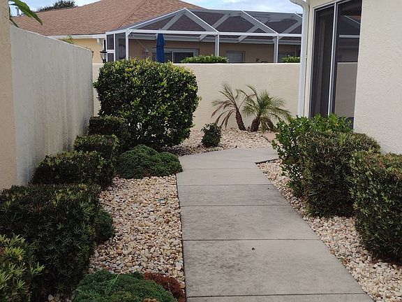 Long term OR Seasonal with a three month minimum, this 2 Bedroom, 2 Bath Villa is nicely furnished and move in ready. 1116 SF. This is a turn key unit with all electric appliances, washer and dryer in the garage. Relax on the screened lanai and enjoy a privacy walled back yard. Yard maintenance included. Golf cart is included as a courtesy with required insurance by tenant. Located in The Village of Santiago close to everything.