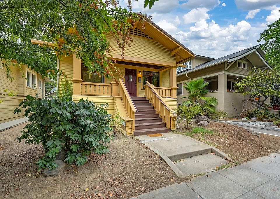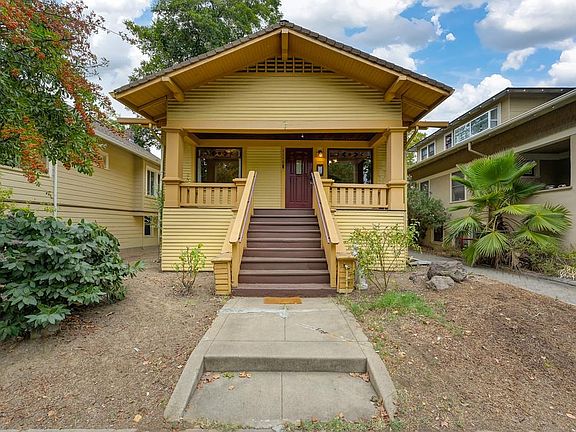 Very sweet 1920 highwater bungalow in a prime East Sac location, walkable to restaurants, cafes, shops, & more. Welcoming front porch, hardwood floors throughout, living room fireplace, beautiful original stained glass windows, coved ceilings, formal dining room with built-in china cabinet, mini-split CH&A. Back bedroom opens to a deck, and there is a carport with storage area. Full basement with many possibilities. This property is sold strictly As-Is.