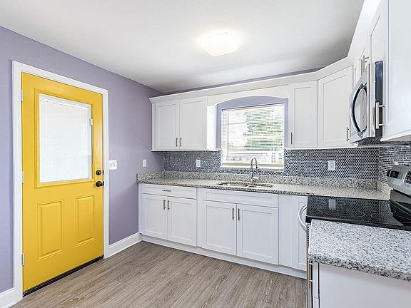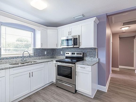 This charming 1950s bungalow has been beautifully renovated from top to bottom. Situated on 1/4 acre with a beautiful spacious side front porch. This beautiful move-in ready 3 bedroom, 2 bathroom home is centrally located awaiting its new homeowner. The kitchen features new soft close white wood cabinets, granite countertops, backsplash and stainless-steel appliances. Dinette off the kitchen with a beautiful chandelier adjacent to the large living area. Both bathrooms have been renovated with new glass tile work, new cabinets and granite countertops. The master features a walk-in closet and beautiful renovated master bathroom. All stylish finishes match the home nicely. This home boosts new flooring throughout, new fresh paint inside and out, new roof, new AC, new insulation and ductwork, new drywall and stucco, new plumbing, new electric, new water heater, doors throughout, new toilets and sinks, new fixtures, ceiling fans and smoke detectors, new frame and front entry. This home has been up-to-date with all pest control treatments. Don't miss the opportunity to call this home yours. Call to schedule your appointment today!