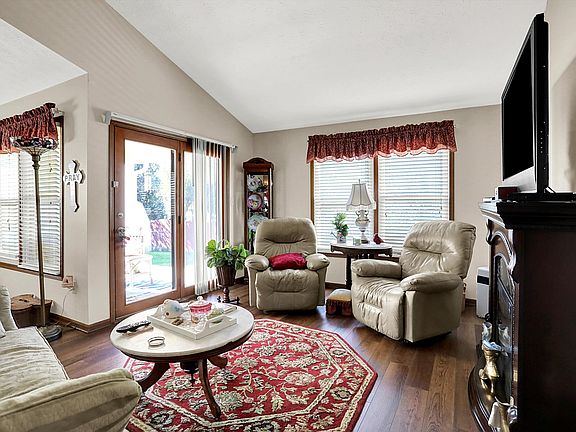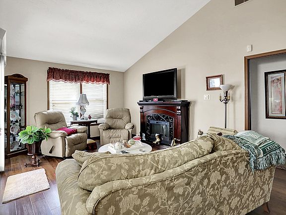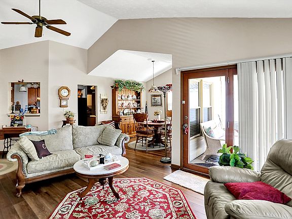 Welcome home to this charming brick-front ranch featuring an open and airy layout with Vaulted ceilings and Luxury Vinyl Plank Flooring throughout. Enjoy peace of mind with a Roof under 2 years old, along with a gas Furnace and Water Heater replaced just last year, a water softener less than 5 years old, and Windows replaced less than 5 years ago. The kitchen includes a Brand-New Dishwasher, and the primary bath was beautifully updated less than 5 years ago. Relax on the covered back patio overlooking the yard, and take advantage of the spacious storage barn. A 2-car garage with pull-down attic storage adds even more convenience. Move-in ready with timeless curb appeal and modern comfort throughout!