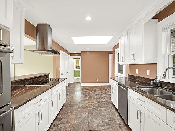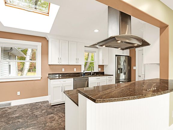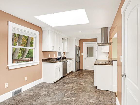 One-car garageSpacious backyardLarge skylightGranite countersLevel lotWhite cabinetryBrick patio