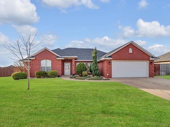 Beautiful home located in a cul-de-sac in the heart of Sheryl home addition. Located 5 minutes from Altus AFB entrance, shopping, restaurant. This home has a large front yard with extended driveway and attached garage. Welcoming front entry way with storage closets and open room that can serve as a formal dining, office or sitting room. The living room is large with gas fireplace feature and has easy access to the kitchen. Kitchen includes granite counter tops with island extension for extra seating. Extra room off the kitchen for a breakfast nook. Kitchen includes tile flooring and beautiful cabinets. There are four bedrooms and two guest bathrooms. Primary bedroom includes spacious en-suite bathroom that includes a shower, deep jetting tub and the perfect walk in closet with built-ins. Guest bedrooms are equipped with great closet space. The backyard has a covered porch area and privacy fencing. This backyard has a lot of room. Home also includes newly replaced roof. Please scheduled your showing today!