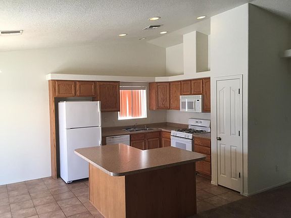 - Exterior features: Desert Landscaping, Fenced Backyard, Heating system: Forced Air, High Ceilings, Kitchen Island, No Utilities included in rent