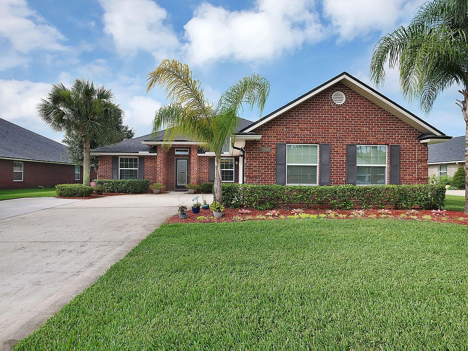 WELCOME HOME to a fabulous all brick home located in the desired community of Glen Eagle. Enjoy this well maintained home that offers 4 bedrooms, 2 baths and magnificent water views. The kitchen has granite counters, stainless appliances, a breakfast bar & breakfast area. The owner's retreat is separate from the additional 3 bedrooms & has a step tray ceiling. The owner's bathroom has dual sinks, a step in shower, jacuzzi tub, a linen closet and a dream over-sized walk-in closet. The large backyard is fully fenced with a newly paved patio that overlooks the pond. Foyer, dining room, hallway and family room have beautiful hardwood floors. LED lighting was added to the home & a deep well for irrigation system. Conveniently located to I-10, I-95, downtown & shopping. This home will not last.