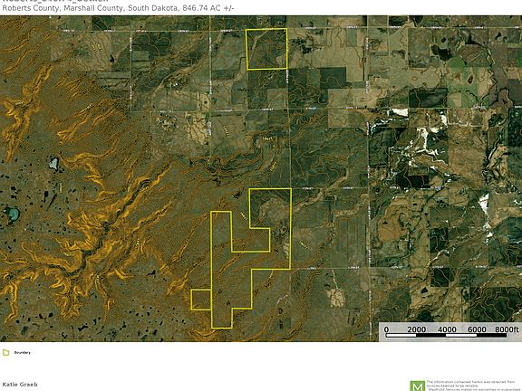 Fair Hills Ranch includes approximately 846 deeded acres and 304 leased acres. This is a productive working farm and ranch with income from grain farming and grazing leases. Positive cash flow from the property averages a 5% return on investment annually. The seller invested in the property infrastructure with pattern tile in the tillable land and new perimeter and cross fencing for cattle. The five dams on the property provide abundant water sources distributed across the property and opportunities for fishing, swimming, and paddling. The mature trees surrounding the building site provide excellent shelter for working cattle in the yard and deer and turkey hunting spots right out the back door.As we drew near the property, the hills of the prairie coteau rose in front of us along the western horizon. Hundreds of acres of contiguous pasture and tillable land spread out in front of us, but tucked back in the mature trees, we spotted the big red barn and the house overlooking the private lake. We knew we were visiting a legacy property as we pulled up the drive past the welcome sign: Fair Hills Ranch. In the yard were a large machine shed and a beautiful home with a fishing pond just a stone's throw from the deck.We unloaded the side-by-side and headed for the hills. On our way, we passed a post adorned with whitetail antlers taken from the property over the years, and I knew we were in for a particular day. We drove through several gates connecting cross-fence in excellent condition. The prairie was in bloom, and we stopped to photograph the South Dakota State Flower, Prairie Pasque. We crossed the first dam of the first lake and made our way to the southern boundary of the property, where we explored an old lichen-crusted stone foundation from a settler's barn. Adjacent to Sica Hollow State Park, it was easy to imagine why the native peoples and settlers chose these protected coulees for making camps and protected building sites. We followed the western boundary fence north, making a small loop into eastern Marshall County. Aside from this 40 acres, most of the property is located in western Roberts County, South Dakota. We climbed to the top of the coteau and turned around for a breathtaking view of the valley; we could see for nearly 100 miles. We drove past three more private fishing lakes on the property. After crossing through the lower end of a wooded draw, we followed the boundary of the drain-tiled corn field located north and west of the house until we emerged on 450th Avenue, which forms the eastern property boundary. We drove 1.5 miles up 450th Avenue to the alfalfa quarter section that has also been improved with drain tile. This quarter generates valuable forage and has approximately 11 acres of trees in the northeast corner that would be excellent spots for hanging tree stands.Like all of the outbuildings, the updated home is in excellent condition and has ample space for family and entertaining. There are five bedrooms and two bathrooms in the approximately 4,300 square foot home with a two-car attached garage. A steel roof provides maintenance-free protection of the house and all the outbuildings. The main floor is an open-concept kitchen, dining, and living room. The large kitchen was tastefully renovated with granite countertops, tile backsplashes, and hickory cabinets. There is in-floor electric boiler heat in the lower and upper levels, a forced air propane furnace, and central air conditioning. There also is a beautiful and practical propane fireplace in the main floor living room. The main floor living room doors open onto a deck overlooking the lake. Fiber optic internet is wired into the house, so you can work from home and never have to leave this paradise.The surrounding area is rich with public hunting areas and popular fisheries. The nearest towns in South Dakota are Claire City and Sisseton, and the nearest large city is Fargo, North Dakota. Neighboring Sica Hollow State Park is famous for camping and horseback riding. If you've been searching for a property worthy of your family's legacy, give us a call to discuss further and arrange an appointment for a tour. Large, contiguous tracts of land with passive income and incredible recreation opportunities are rarely advertised-don't miss out!