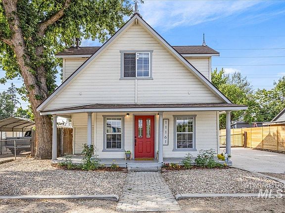 This charming 1920's farm house welcomes you with its wrap around front porch and idyllic exterior in downtown Star. Large, quiet yard with gated entry, lush mature landscape, 15x18 detached garage/shop with power and alley access. The sun room spans the full width of the house and offers a cozy place to enjoy relaxation and views of the park like yard. Many improvements like 2 yr old roof. Efficient floor plan includes 3 bedrooms + office + sun room. So much character in the primary bedroom with vaulted ceilings, private deck, & barn door access to ensuite bathroom. Combine that with the Central Business District zoning in the Historic District of Star and this home truly has SO MANY possibilities! Live there, operate a business or both! Walking distance to town, the park, and a quick drive to the Star River Walk and Boise River. This residence is in the desirable West Ada school district, including the new Owyhee High.