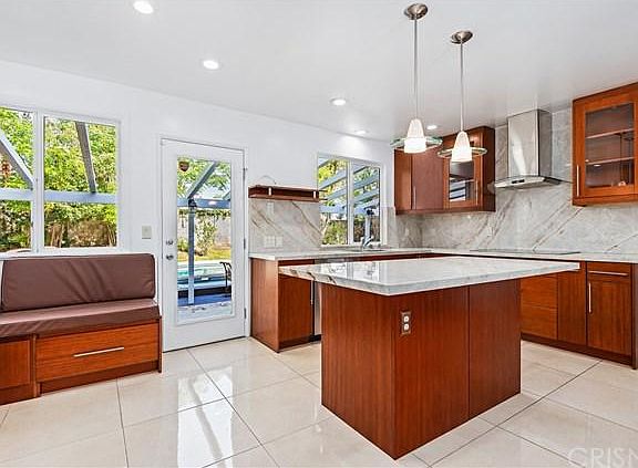 PORTER RANCH LIVING AT ITS FINEST!! From first glance you'll fall in love with the home's character. Exterior Highlights Include: Circular Driveway - Lush Landscaping w/ Mature Palm Trees - Space for a Sport Court - Entertainer's Dream Backyard w/ Large Sparkling Pool - Spa Large Enough for Five or More People - SUANA HOUSE w/ Tile Roof, Electricity & Gas - Expensive Vinyl Decking under the Covered Patio, on the Sundeck and Side Yard - Excellent Amount of Deck Space for Guests to Gather - Large Open Grass Areas In Front & Rear for Kids to Play - Block Walls - Tile Front Porch and Roll-Up Garage Door. Interior Highlights Include; Incredibly Upgraded Kitchen w/ Taj Mahal Quartz Counters from Brazil, Drop Down Lighting Over Island, Stainless Dishwasher, Stainless Double Oven, Stainless Microwave, Combination Glass & Stainless Cooktop Hood, Glass Showcase Cabinetry, Serving Counter to Rear Patio and Built In Breakfast Nook Seating - Stunning Hand Laid Diamond Pattern Wood Floors - GORGEOUS NEW Remodeled Master & Hall Bathroom That Must Be Seen to Appreciate - Downstairs Guest Bathroom w/ Stone Flooring, Stone Walls & Glass vanity - In-door Laundry Room - Stepdown Living Room w/ Stone Fireplace - Crown Molding - Recessed Lighting - Upstairs Skylight Brightens the Home - Insulation and Ducting Have Been Recently Replaced - Raised 6 Panel Interior Doors - Come See What A Fantastic Home This Is!!
