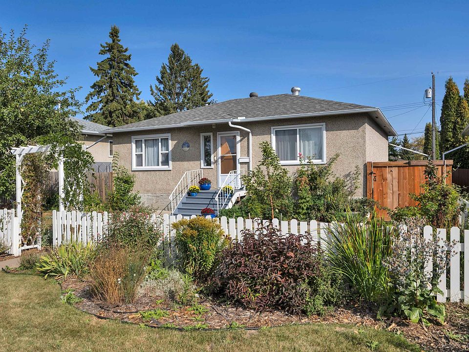 Welcome to Prince Rupert! This well maintained 3 bed / 2 bath bungalow features a newly renovated basement with 2nd kitchen. Ideally located on a quiet street and large lot, the white picked fence will make you feel immediately at home. The vintage front door and original hardwood floors welcome you into the charming living room, with reclaimed vintage fireplace mantle and lighting. Just down the hall is the 4-piece main bath and 2 generous bedrooms. The finished basement with separate entrance offers a 3rd bedroom, rec room, stylish kitchen, and oversized utility room with your laundry and plenty of space for storage. Ideal for entertaining, your large backyard is complete with a concrete patio, greenhouse, vegetable garden, and well manicured lawn. This turnkey home features vinyl windows, a newer furnace (~2021), updated shingles (~2015), new appliances, and a rear pad for extra parking. Easy access to public transit, schools, parks, NAIT, the Royal Alexandra Hospital, and Kingsway Mall. A must see!