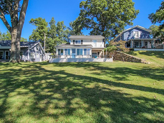 You will not want to miss this chance to own your slice of paradise right on ''The Point'' of coveted 630 acre ALL SPORTS Corey Lake! First time on the market in decades is this absolutely charming 3 bd, 1bth year-round cottage with 80ft of frontage. You can enjoy your morning coffee or evening wine relaxing & soaking in the breathtaking view of the lake from your wrap-round deck, or from the vaulted-ceiling sunroom. Main/Lower level features oak flooring, 1 bdrm, open kitchen & living area, & plenty of built-ins for storage. The UL features a loft & 2 large bdrms; one w/ a walkout deck!  This house comes fully furnished, ready for you to move in and relish every season of beautiful SW Michigan. *PLEASE do not approach neighbors to the west regarding listed property.