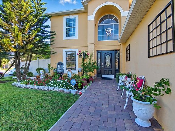 Welcome to 11166 Laxton Street! Set on an oversized corner lot in the peaceful Wetherbee Lakes community, this 4-bedroom + office pool home combines elegant design with everyday functionality. The brick-paver driveway (2023) leads you to a light-filled interior where modern updates meet timeless charm. Step through the front door and you’re greeted by soaring ceilings, fresh interior paint, and Laminate flooring (2022). The gourmet kitchen (2022) is a true centerpiece, showcasing granite countertops, stainless steel appliances, a modern backsplash, and French doors that open to your own tropical paradise. Natural light flows through elegant arched openings connecting the dining, living, and kitchen spaces, making entertaining effortless. Upstairs, the owner’s suite is a private retreat featuring vaulted ceilings, two walk-in closets, and an ensuite bath with double sinks, a garden tub, and a separate shower. Enjoy the Florida lifestyle year-round in your oversized, fenced backyard, complete with a sparkling screened pool and spa, or relax beneath the lush fruit trees—mango, avocado, papaya, peppers, and lime. This home also features solar panels, offering significant energy savings. Residents of Wetherbee Lakes enjoy a community park, basketball court, playground, private security patrol, and a prime location just minutes from shopping, dining, and major highways including 417. You’ll have easy access to Orlando International Airport, Lake Nona Medical City, UCF, and Central Florida’s world-famous attractions. Families will love being within walking distance to Wetherbee Elementary School. This is more than a home, it’s a lifestyle. Schedule your private tour today!