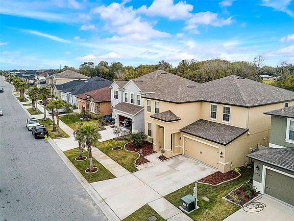 LIKE NEW, ONLY 1 YEAR OLD! Located in the highly sought out Lucaya Lake Club which features resort style amenities. For the low cost of just $35 a month this community has an over sized pool, splash park, fitness center, park, clubhouse and a 78 acre lake with Kayaks available to it's members of the community making it the perfect community for fun to all ages! This Sanibel floor plan built by Ryan Homes is a very unique home as it was customized with many features and upgrades. This floorplan features 3472 sq ft and was customized to be 5 bedrooms with 4.5 bathrooms with 3 out of the 5 bedrooms conveniently having it's own bathroom. Some of the add ons that this home features that is not standard with this floorplan is the 1st floor suite, one of the upstairs bedrooms features it's own bathroom, master bedroom tray ceiling and master bath combo of shower and tub. Some of the many upgrades this home includes are 42" espresso cabinets in the Kitchen with crown molding, granite counter tops in Kitchen and all Bathrooms, upgraded espresso cabinets in all Bathrooms, pre wired surround sound in Living room and Loft, 18" tile throughout 1st floor except in Dining and Living room which feature hardwood floors, upgraded level 3 carpet throughout all of upstairs except in Bathrooms and Laundry room,all baths and showers have 12" tile and backsplash, faux blinds and shutter blinds downstairs in living area and sliding door and much more. You must come see this home for yourself, Schedule your appointment today!